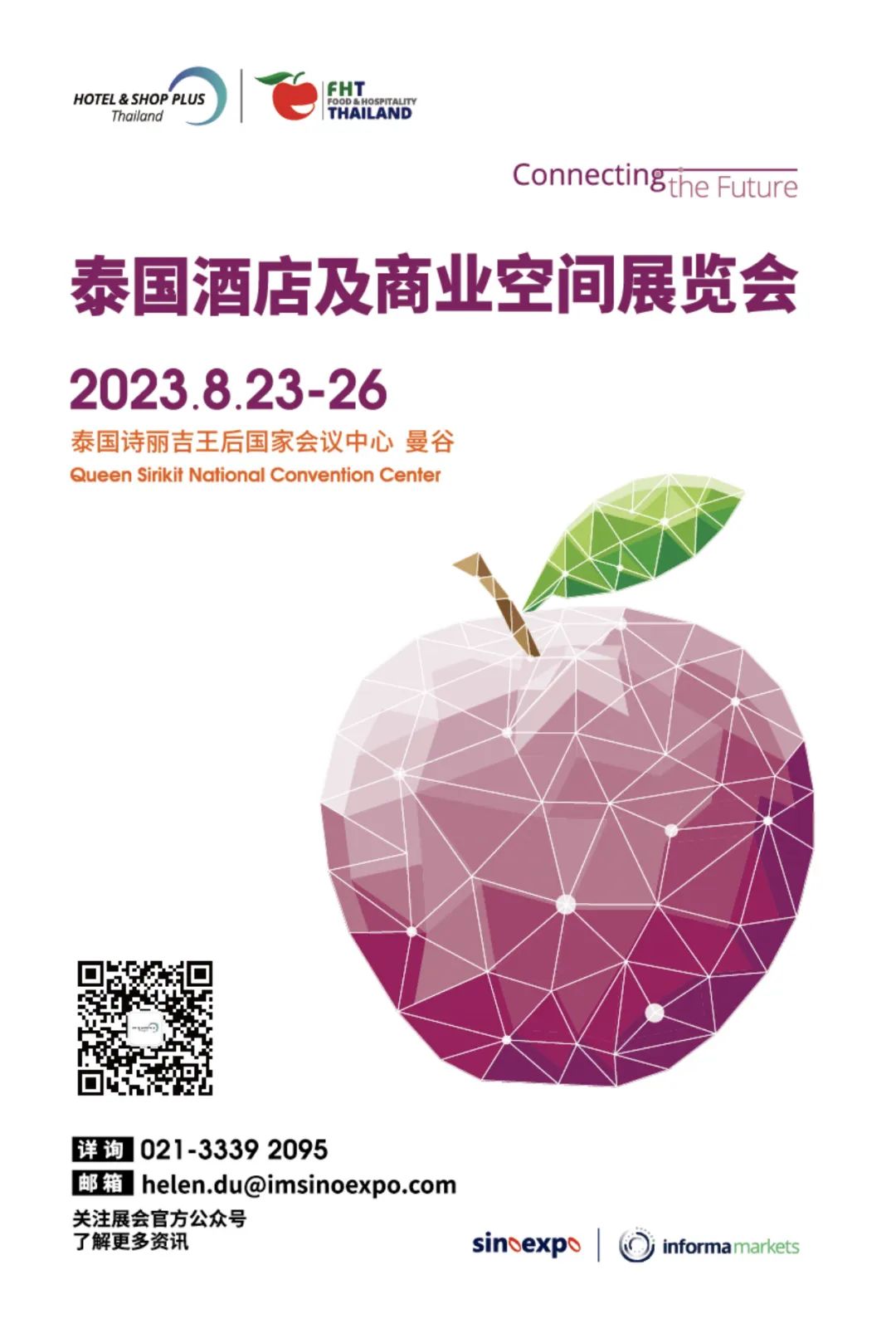為幫助中國(guó)企業(yè)抓住東南亞新型經(jīng)濟(jì)體的增長(zhǎng)風(fēng)口,提高國(guó)際業(yè)務(wù)收入,針對(duì)東南亞地區(qū),Hotel & Shop Plus上海國(guó)際酒店及商業(yè)空間博覽會(huì)攜手FHT泰國(guó)酒店展共同打造泰國(guó)酒店及商業(yè)空間展,將于2023年8月23日-8月26日亮相位于泰國(guó)曼谷詩麗吉王后國(guó)家會(huì)議中心(QSNCC)。同屬Informa集團(tuán)下的兩家酒店類專業(yè)展會(huì),將通過集團(tuán)內(nèi)部的資源整合,為東南亞酒店及商業(yè)空間領(lǐng)域的開發(fā)商、投資商、酒店管理公司等行業(yè)人士提供高效的采購(gòu)選材與業(yè)務(wù)交流的一站式服務(wù)平臺(tái)。
