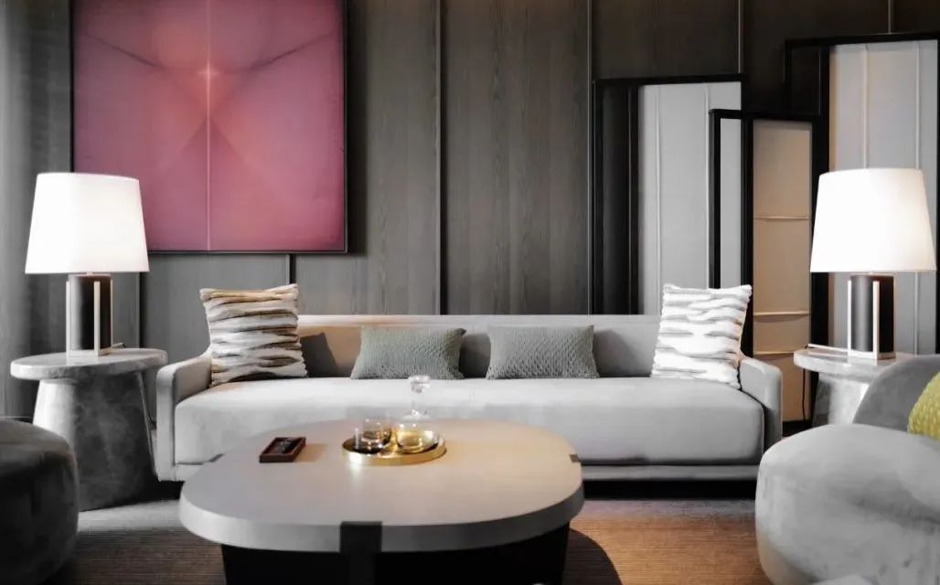 主色調(diào)以木質(zhì)與暗灰為主,將新中式元素融合,典雅韻味且恢弘。